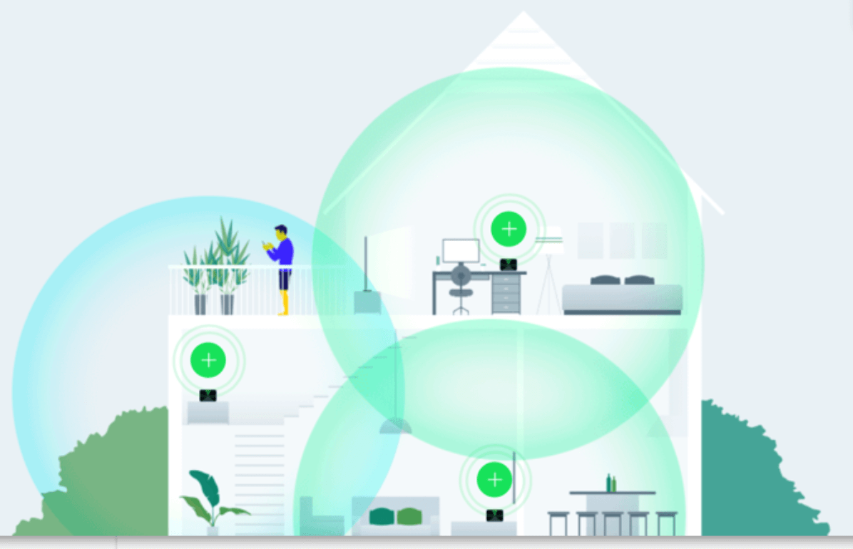 Tutaj z pomocą przychodzi nam wspomniany wcześniej MR2200ac. Aby stworzyć system mesh wystarczy rozszerzyć istniejącą sieć WiFi routera RT2600ac przy wykorzystaniu przynajmniej jednego MR2200ac. Możliwe jest także skonfigurowanie sieci składającej się z wielu routerów MR2200ac. Co najważniejsze w przypadku sieci mesh mamy do czynienia z jedną siecią a zatem nie następują żadne przestoje związane z przełączaniem sieci na przykład w momencie przemieszczania się z urządzeniem. Przykładowo w bardzo dużym domu posiadamy sieć stworzoną z urządzenia RT2600ac oraz dwóch MR2200ac rozstawionych równomiernie zgodnie z poniższymi zaleceniami: