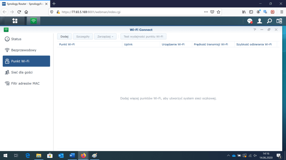Jak to wygląda przy standardowej obsłudze z poziomu komputera? Równie łatwo. Szukamy zakładki Punkt WiFi i klikamy na Dodaj: