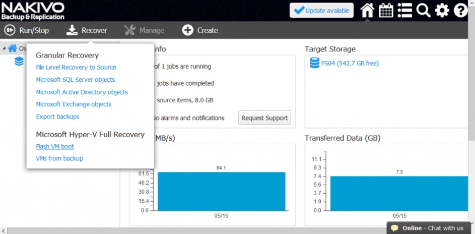 Miło nam poinformować, że pojawiła się nowa wersja NAKIVO Backup & Replication 8.0. Tym samym Nakivo weszło na rynek rozwiązań do odzyskiwaniae danych po awarii dla przedsiębiorstw. Najnowsza wersja zawiera zaawansowaną funkcję Site Recovery, która jest potężnym narzędziem do odzyskiwania danych dla środowisk VMware, Hyper-V i AWS EC2. Funkcja ta umożliwia tworzenie zautomatyzowanych przepływów procesów odzyskiwania, testowanie ich w sposób niezakłócony i wykonanie przełączania awaryjnego za pomocą jednego kliknięcia – wszystko w jednym wygodnym interfejsie webowym. Będzie ona jeszcze dokładnie przez nas badana i zapewne pojawi się w kolejnych artykułach na blogu.