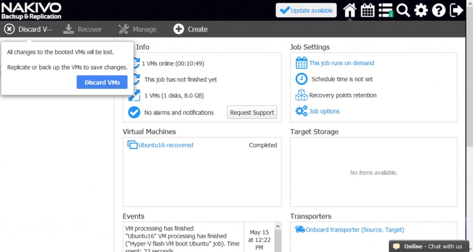 Opcja VM Power off source może być przydatna, gdy źródłowa maszyna wirtualna jest nadal włączona, ale działa nieprawidłowo po awarii.