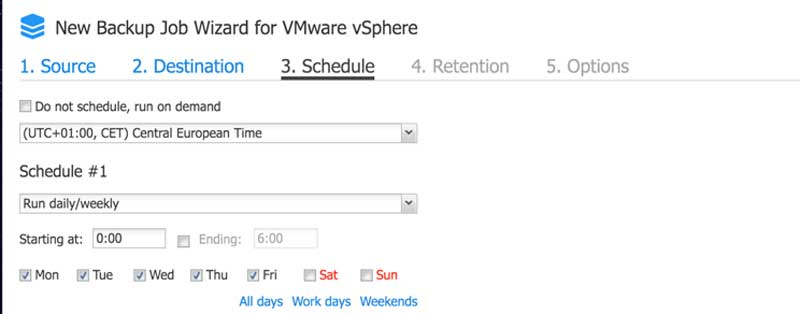 Zarządzanie zadaniami backupu i odtwarzania również jest dostępne z centralnego interfejsu zarządzania, dzięki czemu nie ma konieczności indywidualnej konfiguracji na stacji roboczej czy serwerze co znacznie upraszcza i skraca czas potrzebny na wykonywanie zadań administracyjnych.