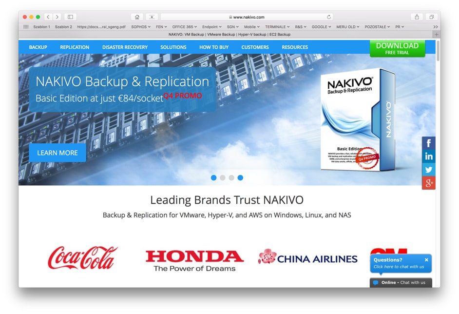 Tyle teorii, jak wdrożenie NAKIVO wyglądało w praktyce? Po pierwsze ze strony https://www.nakivo.com pobieramy trial, duży zielony odnośnik, nie sposób przegapić: