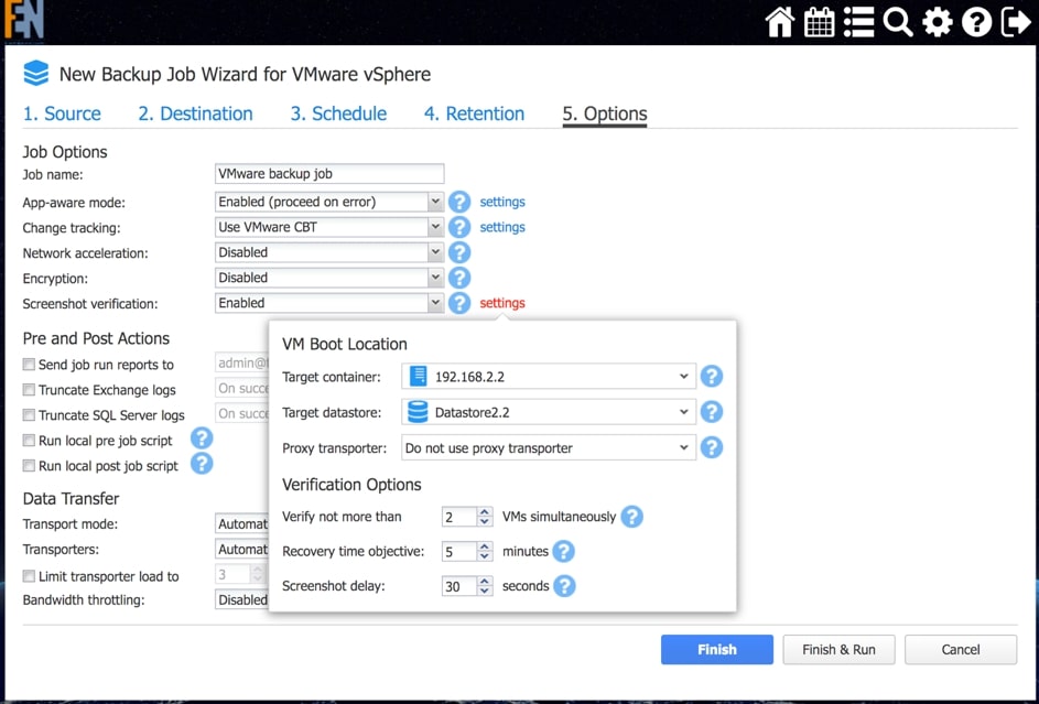 Kolejnym pytaniem, które zadajemy sobie czasami w kontekście rozwiązań do backupu jest to czy nasza kopia zapasowa jest użyteczna, czyli czy będziemy mieli z czego się odtwarzać jeżeli będzie taka konieczność. Dobrą praktyką jest cykliczne testowanie backupów pod kątem możliwości odtworzenia i uruchomienia chronionych maszyn. Nakivo upraszcza jednak również ten proces, dzięki Automatic Screenshot Verification, funkcja ta ma za zadanie w sposób całkowicie automatyczny po wykonaniu zadania backupu przeprowadzić próbę odtwarzania chronionej maszyny.