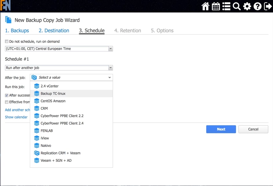 W ramach konfiguracji funkcji Backup Copy, możemy wybrać opcję tworzenia kopii wg ustalonego (odrębnego harmonogramu) lub uzależnić wykonanie kopii od już wykonywanych zadań, automatyzując proces archiwizacji. W ten sposób ukończone prawidłowo zadanie backupu danej maszyny może wywoływać zadanie utworzenia kopii, w którym również możemy skorzystać z wcześniej opisanego mechanizmu Screenshot Verification aby upewnić się, że ta kopia również będzie użyteczna.