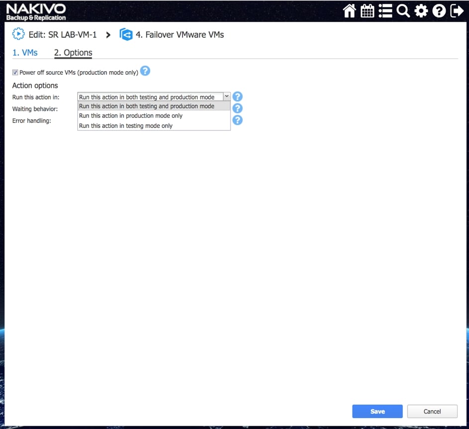 Zwieńczeniem automatyzacji procesów backupu i odtwarzania w Nakivo jest mechanizm Site Recovery. Mechanizm Site Recovery umożliwia utworzenie zestawu akcji, które mają być realizowane przez oprogramowania w określonej przez administratora kolejności w wypadku gdy dojdzie w środowisku do awarii, planowany jest serwis wirtualnej infrastruktury lub musimy udowodnić dla potrzeb wszelkiego rodzaju audytów wewnętrznych i zewnętrznych jak skutecznie i szybko jesteśmy w stanie odtworzyć nasze środowisko.