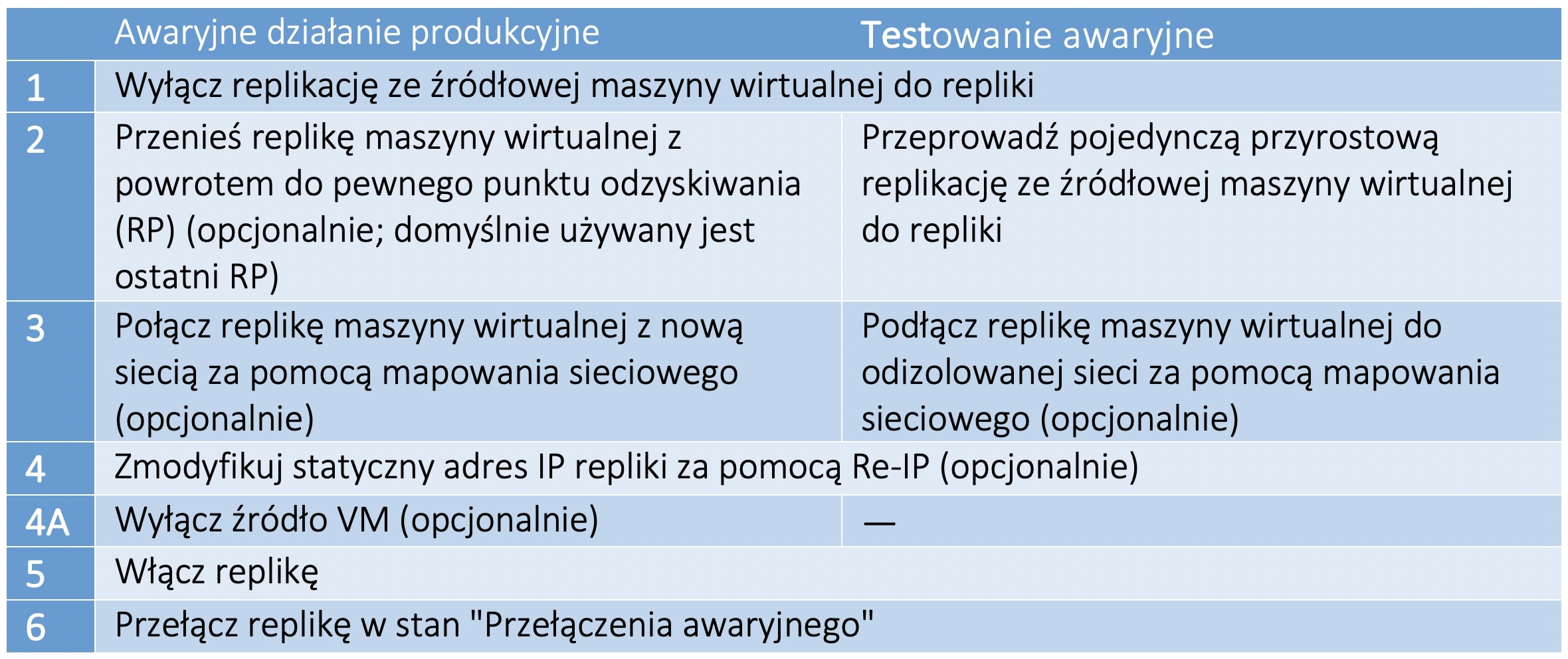 Poszczególne z akcji mają możliwość określenia, które z nich będą wykonywane tylko w czasie awaryjnego odtwarzania, a które w czasie procedury testowej, dzięki czemu możemy zasymulować odtwarzanie środowiska bez szkody dla środowiska produkcyjnego.