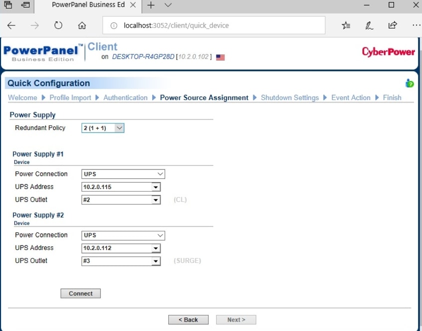 PowerPanel Client – kreator, etap przyporządkowania źródeł zasilania