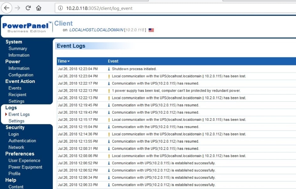 Power Panel staje na wysokości zadania i jeśli komputer ma nadmiarowe zasilanie, zdarzenie „wyłączenie systemu” zostanie wywołane dopiero po utracie wszystkich nadmiarowych zasilaczy UPS, w momencie, gdy problem dotyczy „ostatniego” UPSa.
