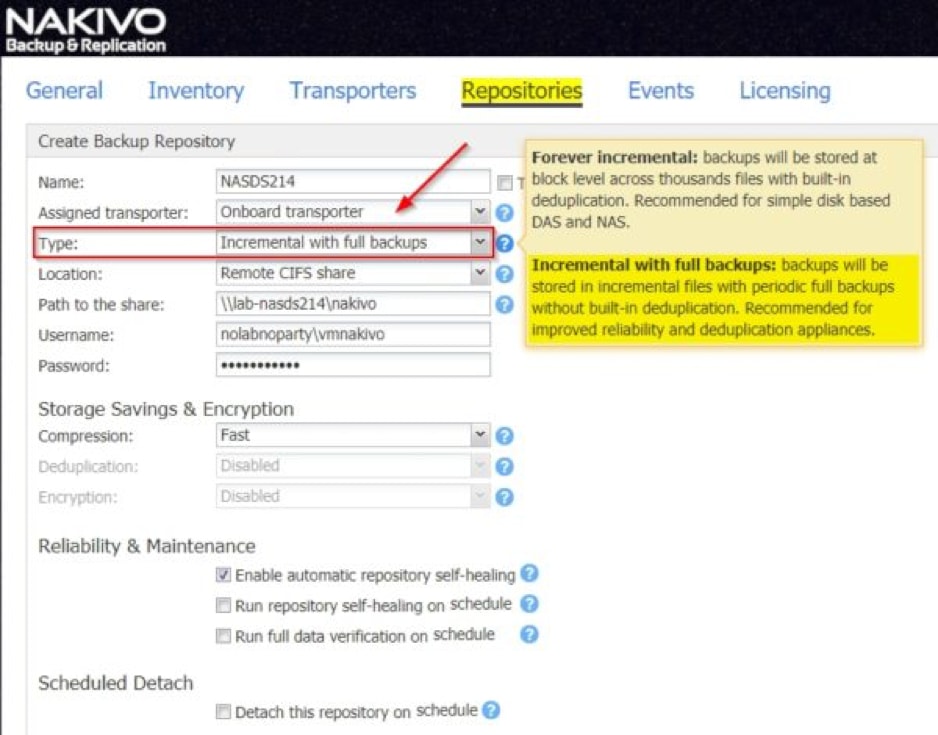 Dodatkowo w becie mamy możliwość wyboru specjalnego trybu repozytorium, który cechuje specyficzna architektura, stworzona tak, by współpraca NAKIVO Backup & Replication z urządzeniami do deduplikacji stała na jak najwyższym poziomie i zapewniała wysoką wydajność backupu.