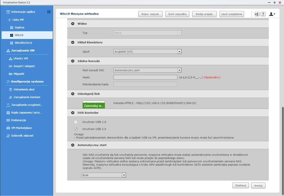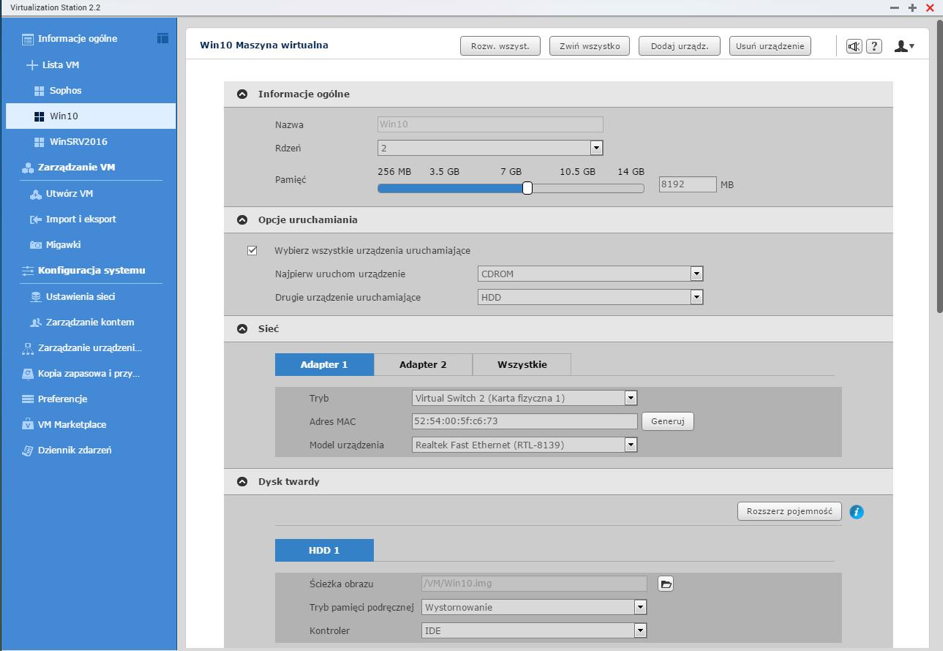 Karta zamontowana, możemy zaczynać. Mój QNAP już wcześniej został zainicjowany oraz utworzyłem maszynę wirtualną dla naszych testów. Maszyna wirtualna ma przydzielone 2 rdzenie, 8GB pamięci RAM oraz utworzony dysk twardy 250GB. Zainstalowany system to Windows 10, bez dodatkowej konfiguracji.